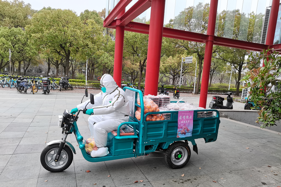 为全面落实校内疫情防控工作要求,学院及时组建了以师生党员为主体的抗疫志愿者小队。志愿者小队团结互助、高效合作,除了完成核酸检测秩序维护、楼宇日常管理、宿舍卫生清扫、各类物资运送等工作,还要承担起每日近三千份餐饮送递任务。“一日三餐,一餐不能少,一刻不能晚”,从食堂排队、饭菜分装、餐袋装车、路途运送,再到餐袋卸货,他们在食堂与楼栋之间争分夺秒,全心投入,第一时间将热腾腾的饭菜、整箱的水果送到各个楼栋摆放整齐。学院所有思政教师进驻宿舍楼栋,奋战一线,始终陪伴在同学们的身边,有效提高了管理效能。
